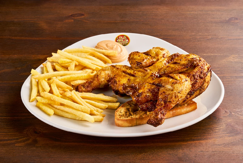 Grilled Italian chicken*, specially seasoned, served with French fries*, OWW sauce, and a toasted bread slice*. Like it spicy? Try it with our Chipotle chili sauce