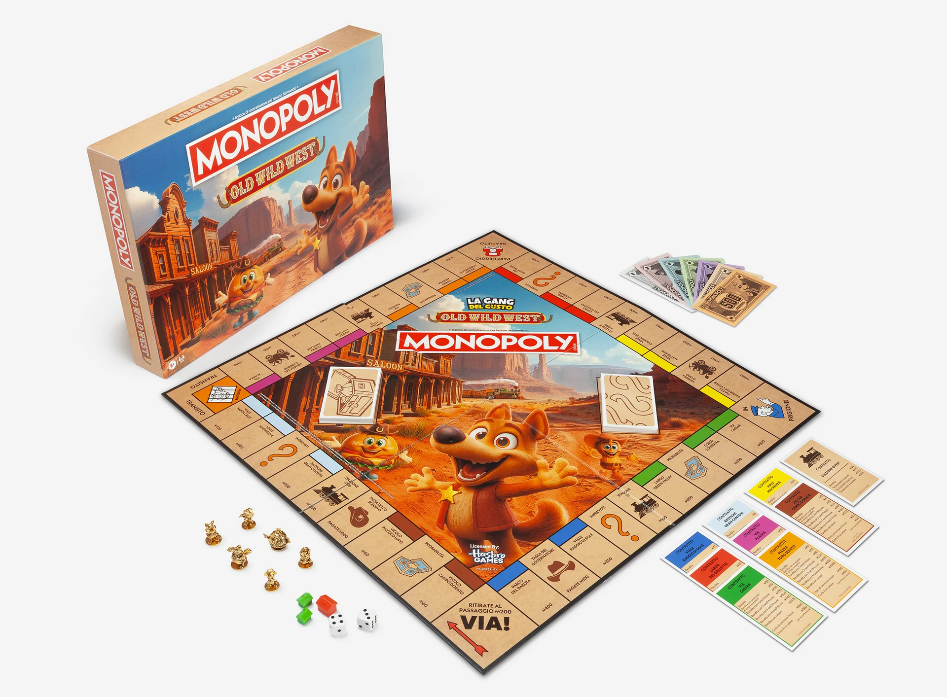 Le pedine di Monopoly Old Wild West sono preziose come l’amicizia: solo in questo gioco puoi trovare i simpatici personaggi della Gang del Gusto in versione dorata. Wildy, Pata, Mr. Chicken, Dolceluna, John Peanut, American Burger... Chi sarà il tuo portafortuna?